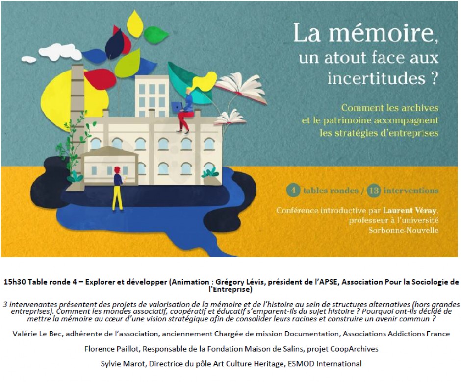 3 intervenants présentent des projets de valorisation de la mémoire et de l’histoire au sein de structures alternatives (hors grandes entreprises). Comment les mondes associatif, coopératif et éducatif s’emparent-ils du sujet Histoire ? Pourquoi ont-ils décidé de mettre la mémoire au cœur d’une vision stratégique afin de consolider leurs racines et construire un avenir commun?